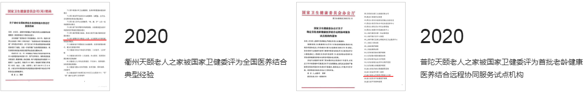 2020年9月1日健康老齡司通報(bào)確定《衢州天頤老人之家:以互聯(lián)網(wǎng)為手段創(chuàng)建智慧醫(yī)養(yǎng)模式》為“全國(guó)醫(yī)養(yǎng)結(jié)合典型經(jīng)驗(yàn)”。