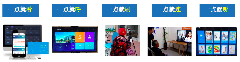 “一點(diǎn)就連”就是通過開設(shè)“遠(yuǎn)程醫(yī)療”+“親情可視通話”場景,便捷地獲取“云診”服務(wù)。通過視頻連線,醫(yī)生將詳細(xì)詢問并查看老人的癥狀,僅需十多分鐘時(shí)間便可為老人完成線上診療,并給出針對性建議。“一點(diǎn)就呼”就是老人語音呼叫,社區(qū)工作人員居家上門服務(wù),實(shí)現(xiàn)助餐、助浴、助潔、助行、助醫(yī)等服務(wù)。“一點(diǎn)就看”、“一點(diǎn)就聽”、“一點(diǎn)就刷”等智慧場景分別是對老人的日常監(jiān)護(hù)、精神生活、健康檔案等方面,通過“線上點(diǎn)單接單、線下服務(wù)”的方式,由專業(yè)養(yǎng)老服務(wù)人員和志愿者為居家老人提供一系列服務(wù)。互聯(lián)網(wǎng)+照護(hù)、醫(yī)療、健康、文娛等服務(wù)解決了老年人“數(shù)字鴻溝”問題,收獲了老人們的點(diǎn)贊。