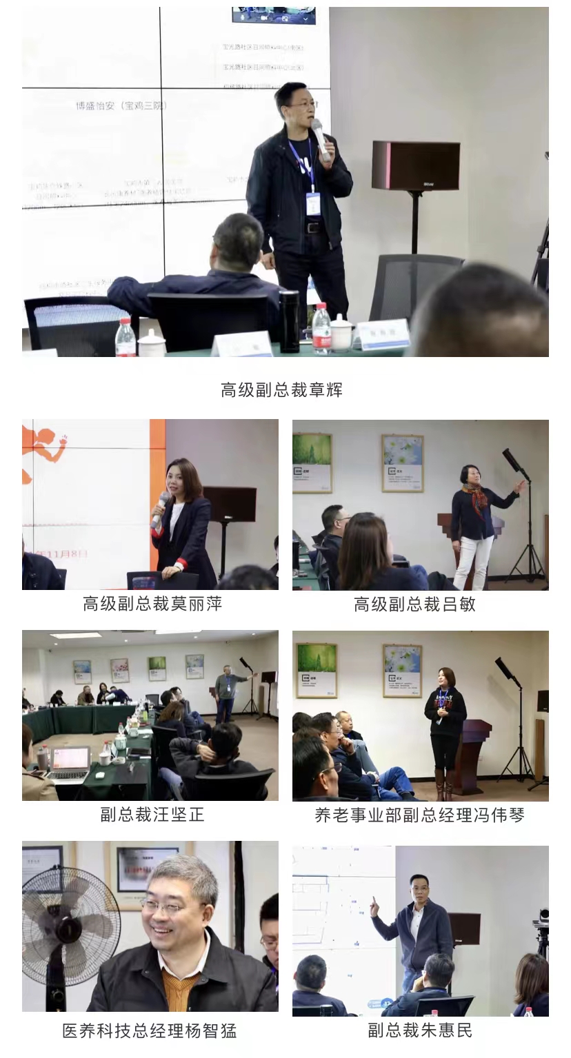 下午,各區(qū)域負(fù)責(zé)人分享了本部門2021年重要工作。高級副總裁章輝展示了數(shù)字康養(yǎng)1.0版本并介紹了西安、常山、衢州等項目的開展情況;高級副總裁莫麗萍分享了臨安賽康、蕭山快康、康久天頤養(yǎng)老院 | 護理院的運營狀況,并詳細(xì)介紹了各院特色科室的打造和未來醫(yī)院一體化發(fā)展的設(shè)想;高級副總裁呂敏就嘉興和舟山醫(yī)院的現(xiàn)狀進行了分析,并指出更廣泛的業(yè)務(wù)拓展和更完善的就醫(yī)流程至關(guān)重要,在發(fā)展的同時必須堅持因地制宜;副總裁汪堅正介紹了衢州、成都和石嘴山機構(gòu)的基本情況,并表示未來要從創(chuàng)新中尋求差異化,不斷提升服務(wù)質(zhì)量;養(yǎng)老事業(yè)部副總經(jīng)理馮偉琴介紹了運營中和洽談中的養(yǎng)老機構(gòu)基本情況,強調(diào)把控服務(wù)質(zhì)量的重要性;醫(yī)養(yǎng)科技總經(jīng)理楊智猛介紹了現(xiàn)有業(yè)務(wù)的工作進度和現(xiàn)有產(chǎn)品的升級優(yōu)化情況;副總裁朱惠民跟大家分享了集團新辦公樓的設(shè)計方案以及養(yǎng)老網(wǎng)論壇等項目的籌備情況,表示要各部門間要保持信息溝通順暢,促進集團的持續(xù)發(fā)展。