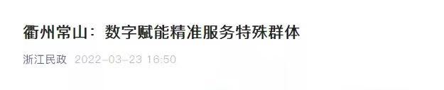 近日,“浙江民政”微信公眾號以“衢州常山:數(shù)字賦能精準服務特殊群體”為題,報道了衢州市數(shù)字化改革聚焦“一老一小”民生改善工作,一項項惠民舉措,極大地提升了老少群體的獲得感、幸福感、安全感。今年3月,“一老一小”工作入選浙江省民政數(shù)字化改革重大應用建設試點。