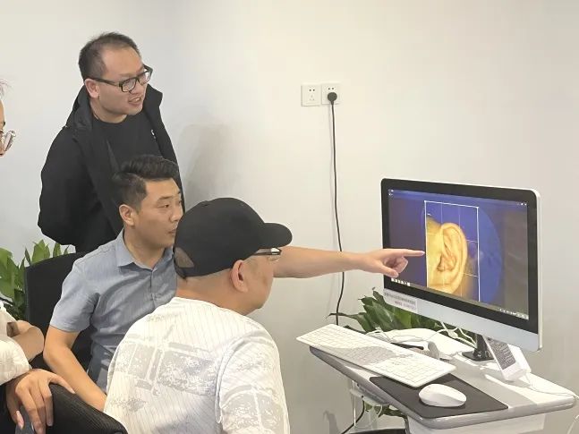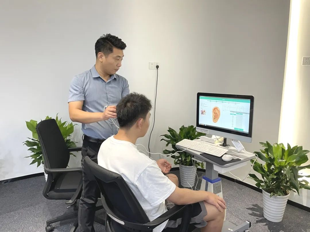 不同于常規(guī)的體檢,中醫(yī)耳穴診療只需要一支耳穴檢測(cè)筆、一臺(tái)電腦就可以操作了。耳穴檢測(cè)操作師李東飛老師在員工手腕部貼上導(dǎo)聯(lián)電極,并通過(guò)對(duì)兩只耳朵的耳像采集,同時(shí)輸入相應(yīng)參數(shù),即可在電腦上生成該員工的“耳穴檢測(cè)報(bào)告”。耳穴檢測(cè)完成后,診療師再根據(jù)耳穴檢測(cè)報(bào)告,實(shí)施“耳穴貼壓治療”方案。耳穴貼壓前,員工們先享受了一輪耳廓按摩服務(wù)。你可別小瞧這按摩,除了能帶來(lái)舒適的按摩體驗(yàn)感,其最大目的是調(diào)動(dòng)耳廓的氣血,讓貼壓效果更好。