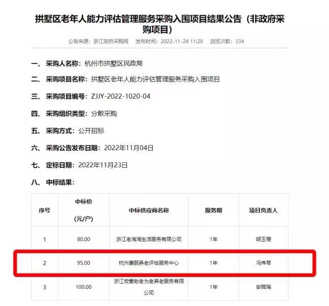 11月24日,康久集團旗下杭州康頤養(yǎng)老評估服務(wù)中心成功中標(biāo)“杭州市拱墅區(qū)老年人能力評估管理服務(wù)項目”。