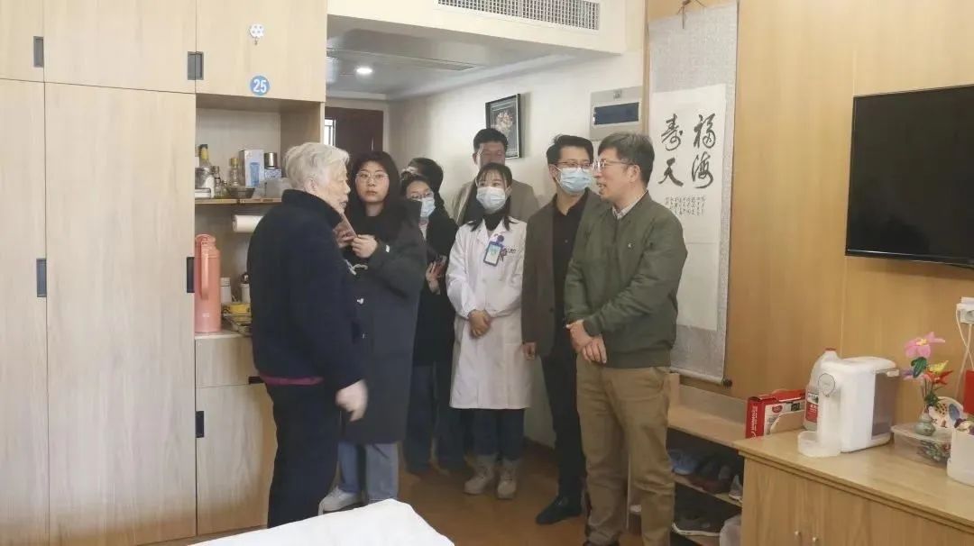調(diào)研組一行實地參觀了康久醫(yī)院各科室、住院部,普陀天頤老人健康自理區(qū)、小單元多功能集中養(yǎng)護區(qū)、智能助浴室、棋牌室、書畫室、禮佛室等功能區(qū)域。