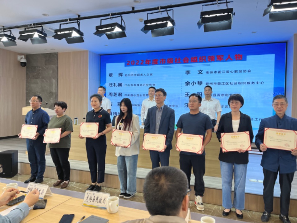 會(huì)上對(duì)2022年度表現(xiàn)突出的社會(huì)組織及個(gè)人進(jìn)行表彰,頒發(fā)了“2022年度市級(jí)品牌社會(huì)組織”“2022年度市級(jí)社會(huì)組織領(lǐng)軍人物”“2022年度有影響力社會(huì)組織代表”“2022年度有影響力社會(huì)組織人物代表”獎(jiǎng)項(xiàng)。