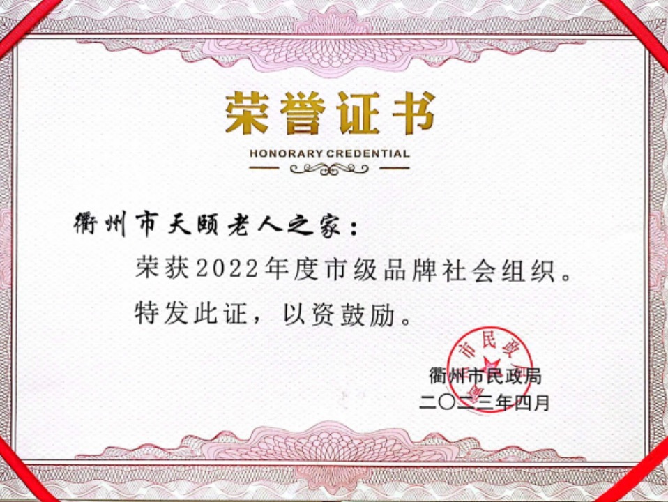 衢州市天頤老人之家始運(yùn)營于2013年9月,為浙江省首家實(shí)行“公建民營”養(yǎng)老機(jī)構(gòu)。通過互聯(lián)網(wǎng)技術(shù)融合養(yǎng)老、護(hù)理、康復(fù)、醫(yī)療等領(lǐng)域,衢州市天頤老人之家開創(chuàng)了線上線下一體化的“醫(yī)養(yǎng)結(jié)合”新型養(yǎng)老服務(wù)模式,2019年入選國家衛(wèi)健委“全國互聯(lián)網(wǎng)+醫(yī)養(yǎng)結(jié)合典型經(jīng)驗(yàn)”,2020年被評(píng)為“5A級(jí)社會(huì)組織”,2020年和2021年連續(xù)兩年榮獲衢州市政府特別獎(jiǎng)——幸福產(chǎn)業(yè)之星獎(jiǎng),配套的衢州康久第二醫(yī)院也于2022年榮獲“老年友善醫(yī)療機(jī)構(gòu)”稱號(hào)。
