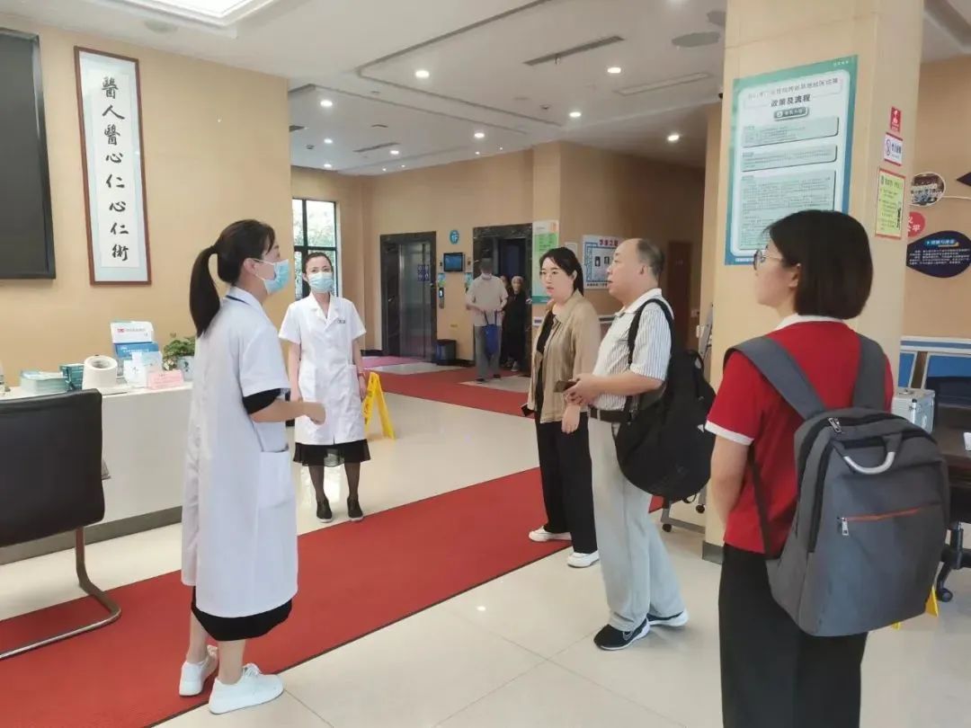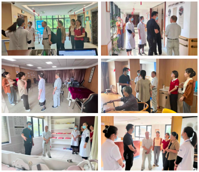 工學院院領(lǐng)導(dǎo)一行實地參觀了康久醫(yī)院各科室、住院部、普陀天頤老人之家健康自理區(qū)、小單元多功能集中養(yǎng)護區(qū)、智能助浴室、棋牌室、老人能力評估室等功能區(qū)域。
