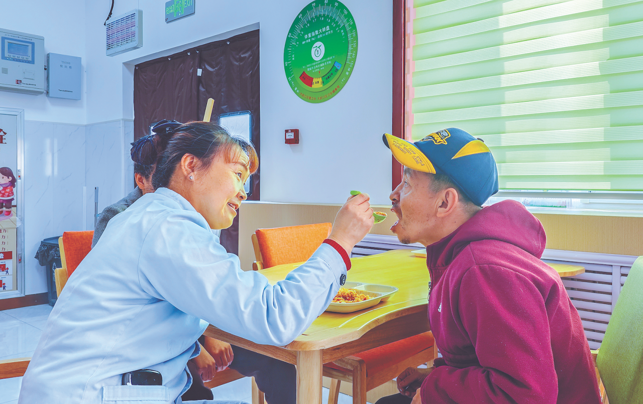 11月15日,大武口區(qū)朝陽(yáng)街道辦事處“忘憂草·殘疾人之家”的工作人員對(duì)寄宿的殘疾人進(jìn)行生活照料。