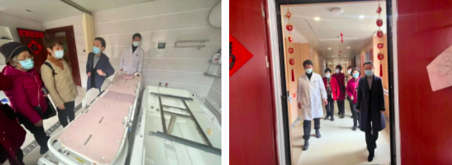 考察組一行實地參觀了普陀康久醫(yī)院、普陀天頤老人之家健康自理區(qū)、小單元多功能集中養(yǎng)護區(qū)、智能助浴室、認知障礙照護專區(qū)、活動室等功能區(qū)域。